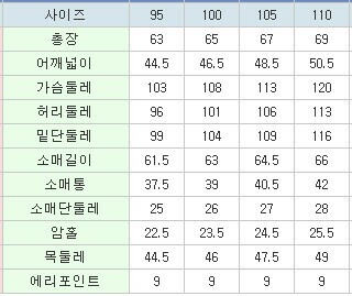 | 3. 치수 | 95,100,105,110 |