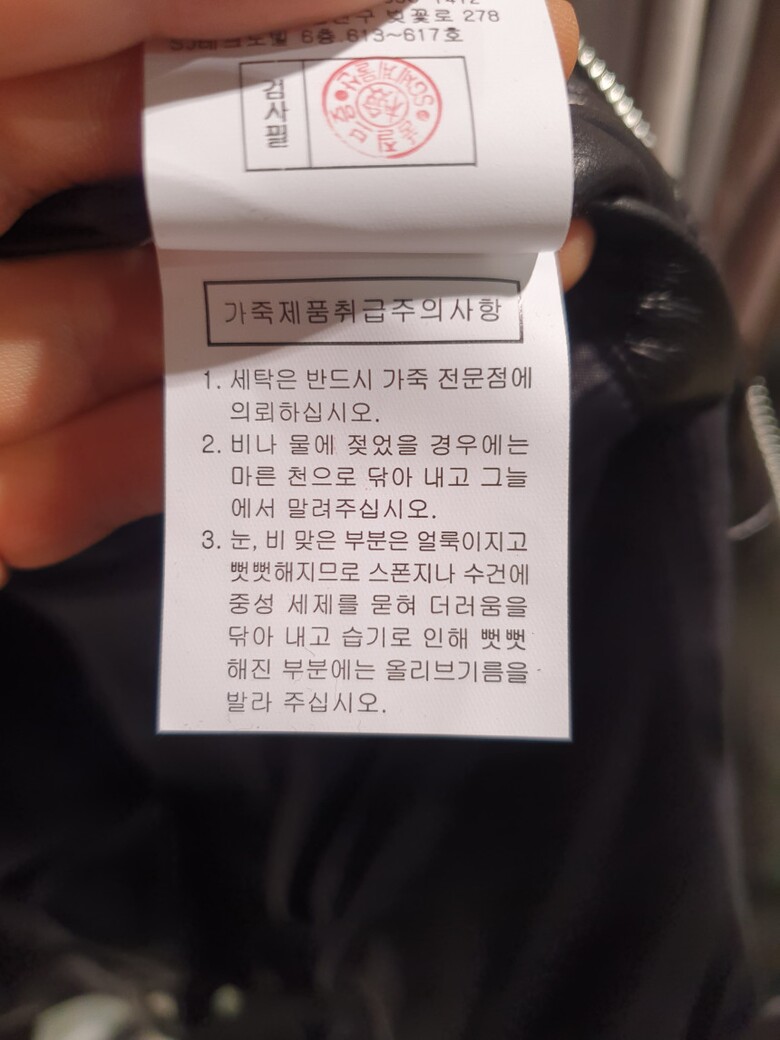 | 6. 세탁방법 및 취급시 주의사항 | 가죽 전문점에 의뢰하세요. |