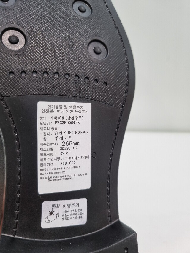 | 1. 제품 소재 (운동화인 경우에는 겉감, 안감을 구분하여 표시) | 소가죽 |