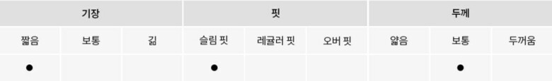 · 핏감 : □ 루즈 ■ 표준 □ 슬림