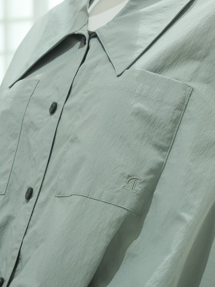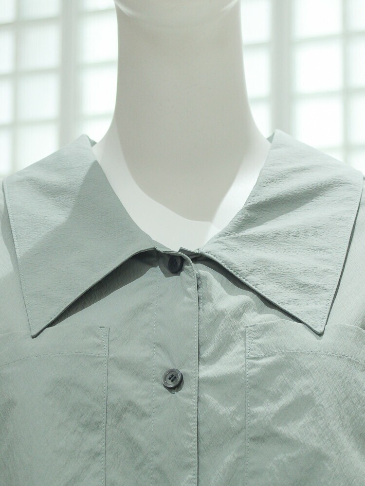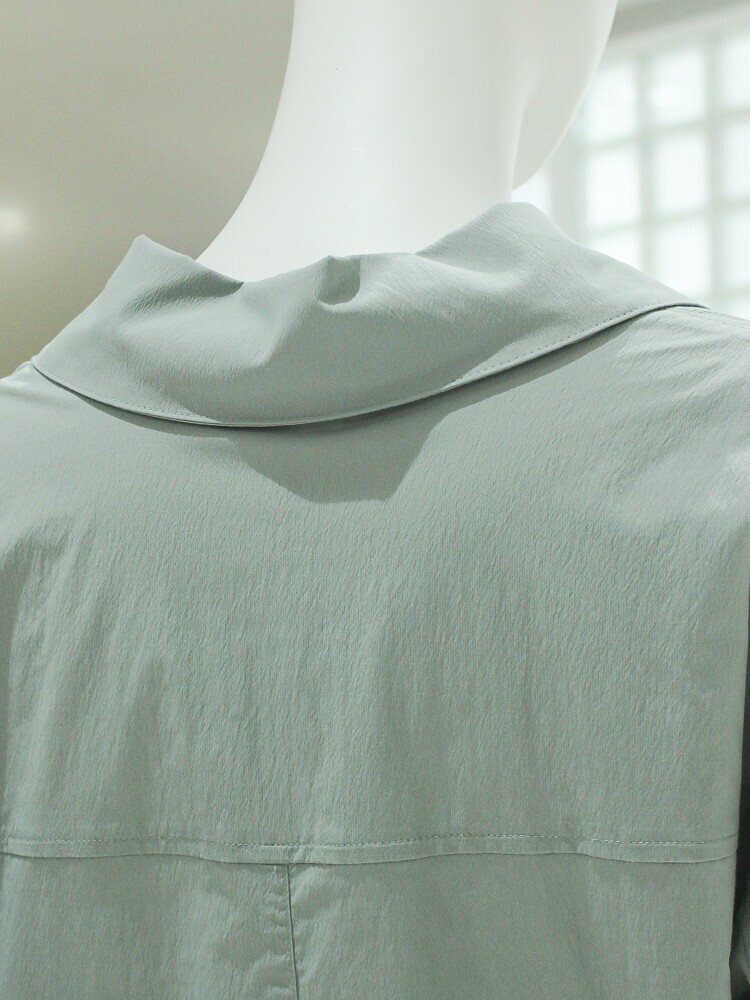 와이드 카라 디자인에 밑단 셔링 포인트로