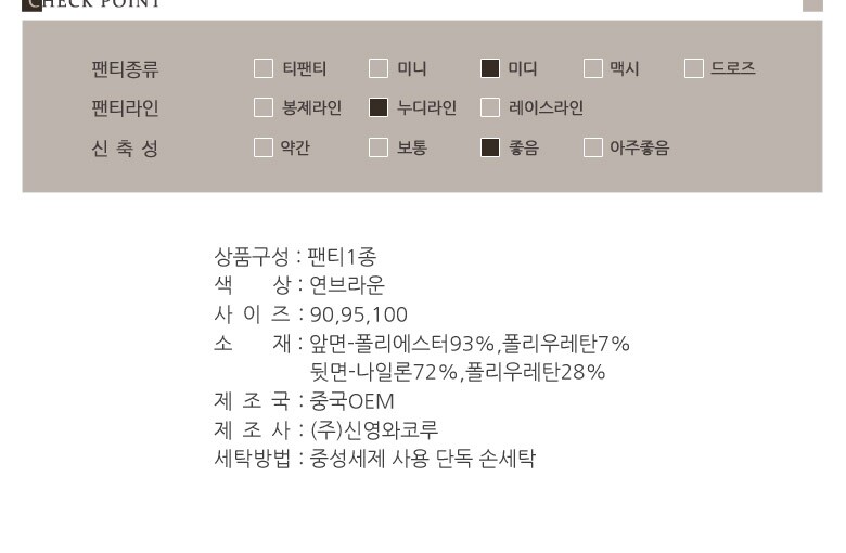 1. 제품 소재 (섬유의 조성 또는 혼용률을 백분율로 표시, 기능성인 경우 성적서 또는 허가서) 상세페이지참조