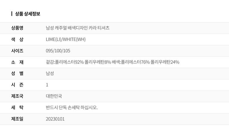 2. 색상 | LIME(LI)/WHITE(WH) |