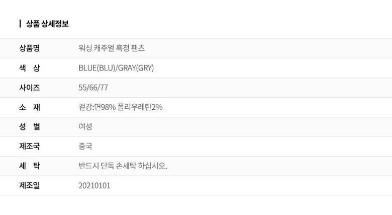 | 6. 세탁방법 및 취급시 주의사항 | 상세페이지 참조 |