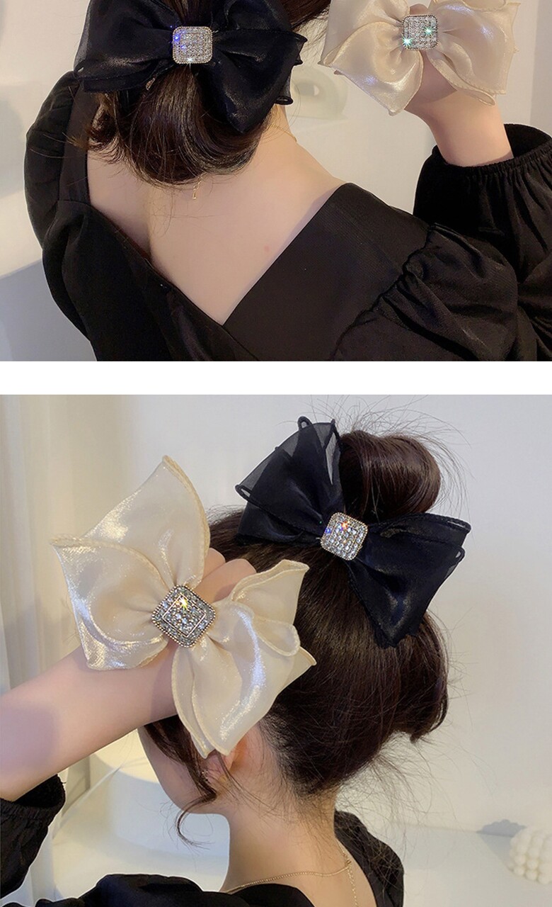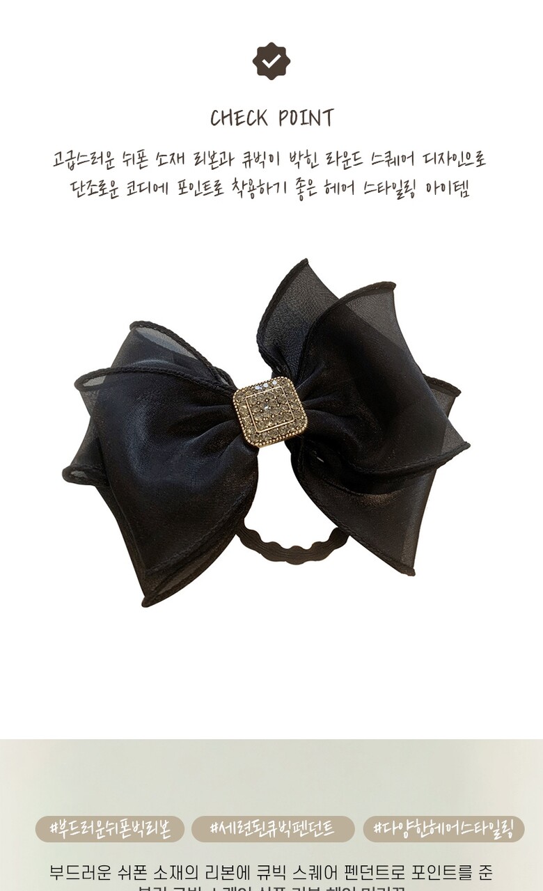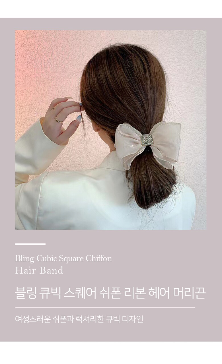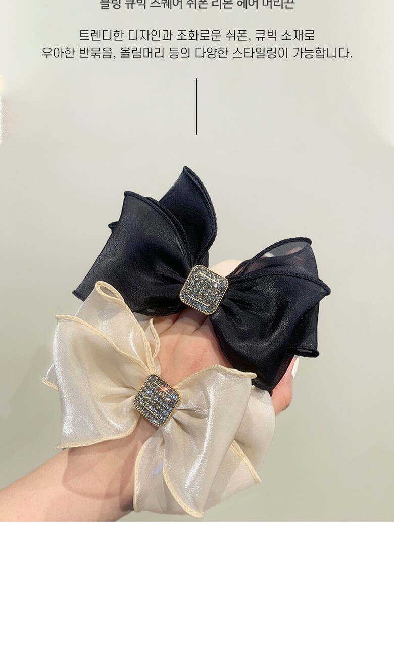 [2COLOR] 블링 큐빅 스퀘어 쉬폰 리본 헤어 머리끈