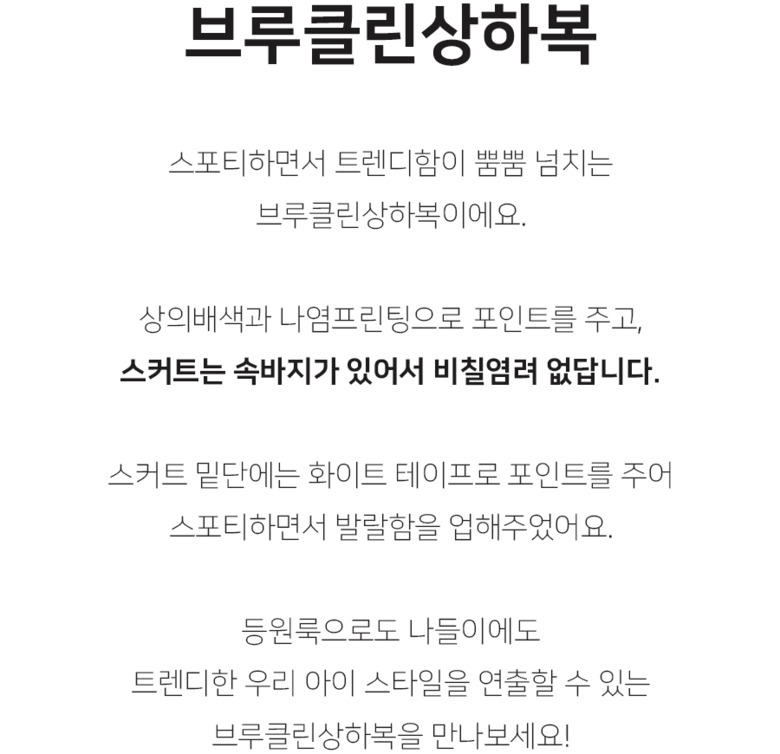 | 1. 제품 소재 (섬유의 조성 또는 혼용률을 백분율로 표시, 기능성인 경우 성적서 또는 허가서) | 별도표시 |