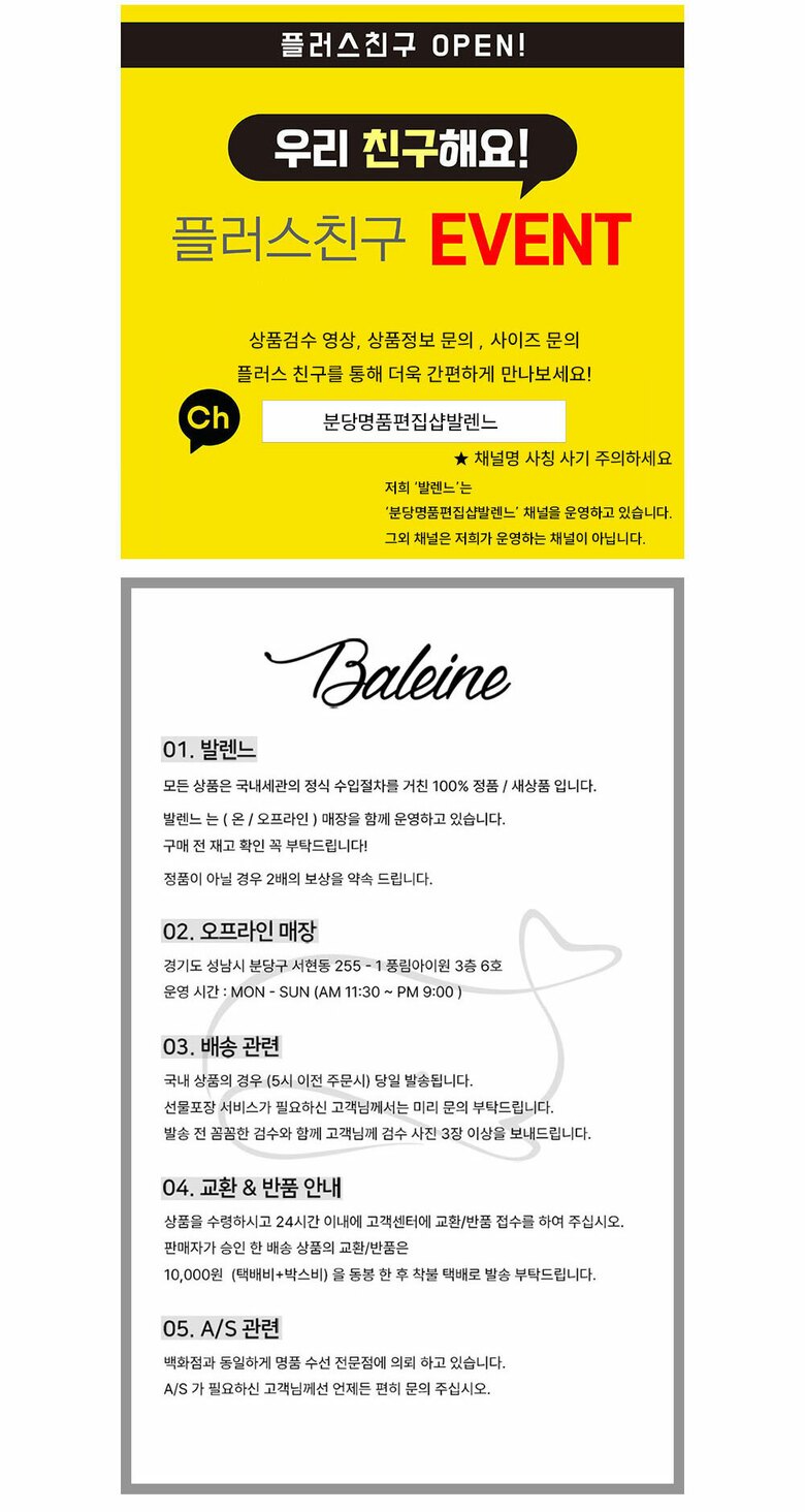 BALEINE '발렌느'의 모든 상품은 정식 통관을 거친 100% 정품 /새상품 입니다.