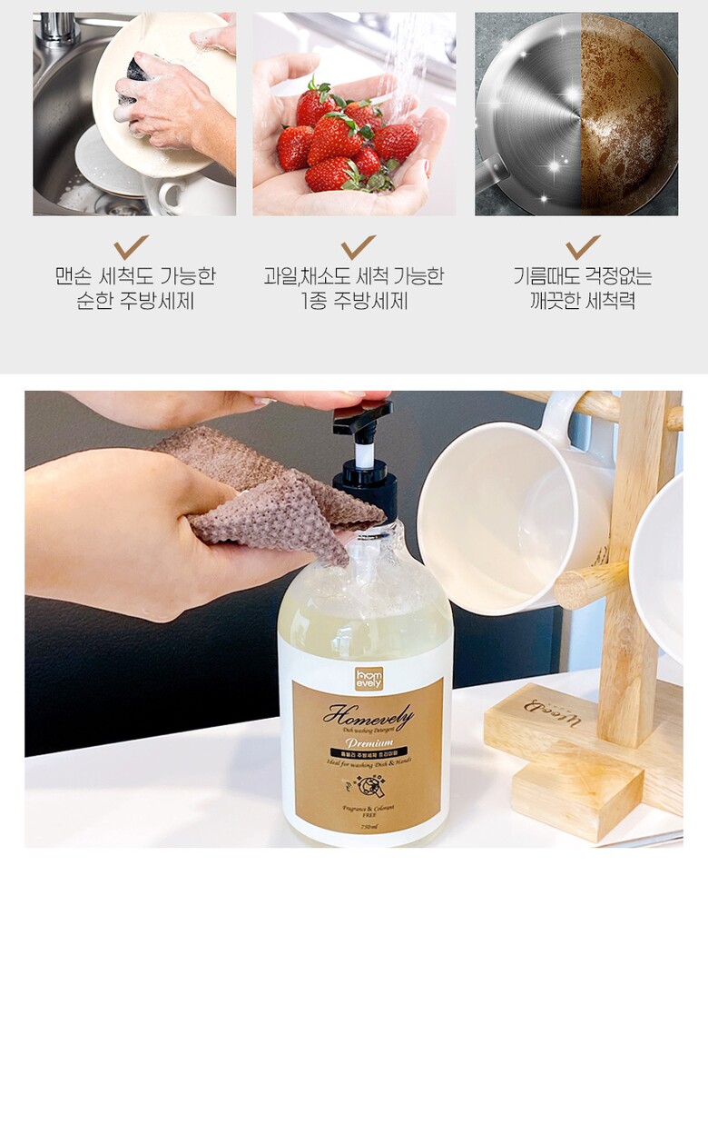 스벅쿠폰 증정 [홈블리] 프리미엄 고농축 1종 주방세제 750mL 중성세제 과일 야채 세척제