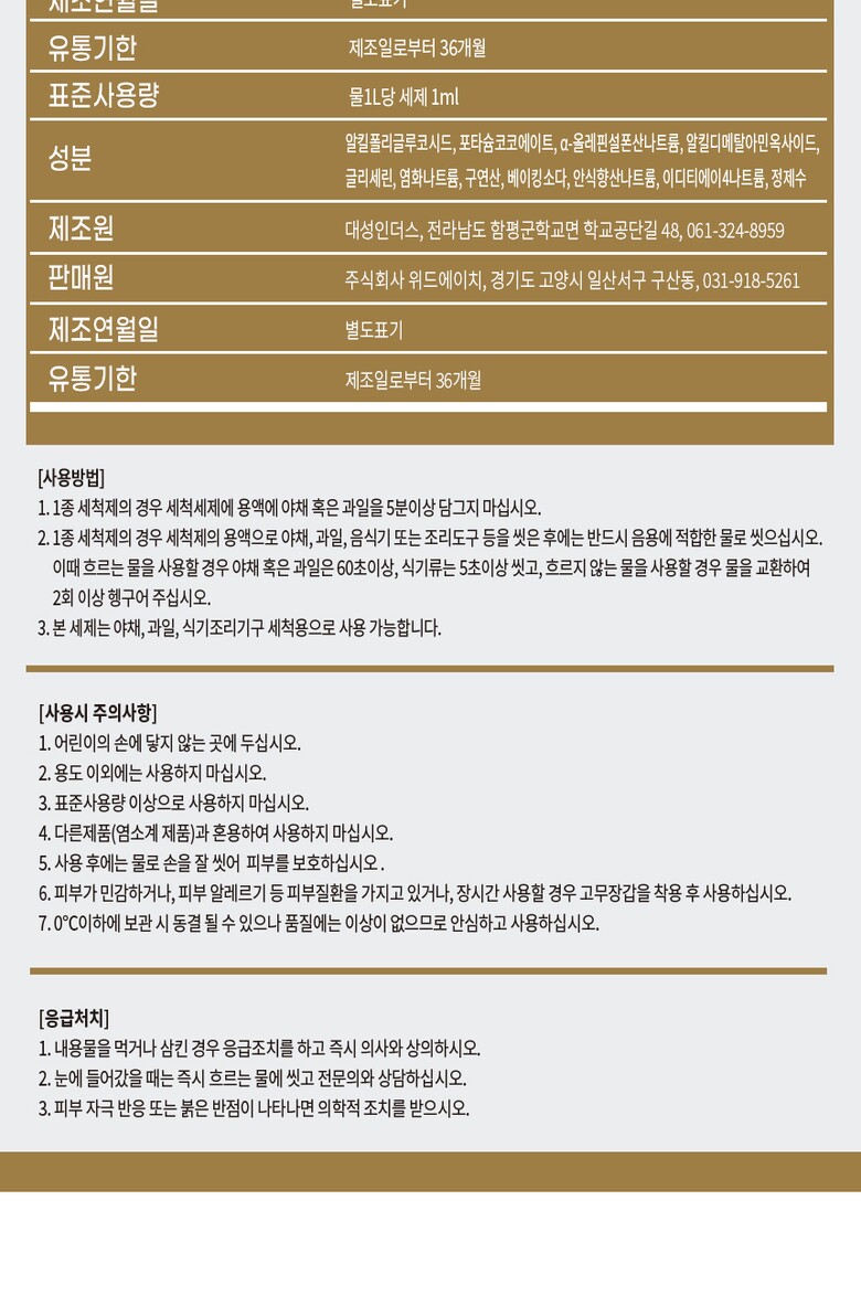 1. 품명 및 모델명 | 홈블리 주방세제 프리미엄 |