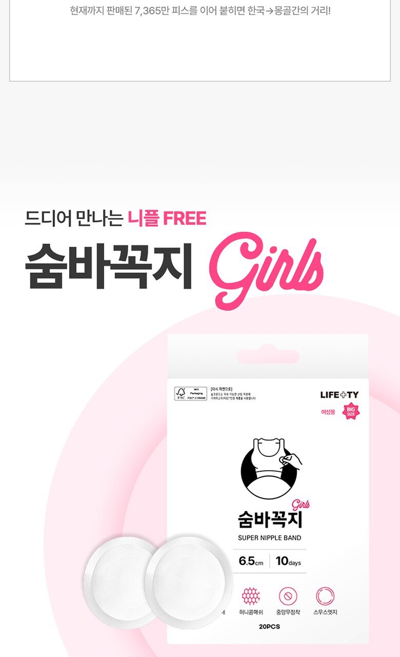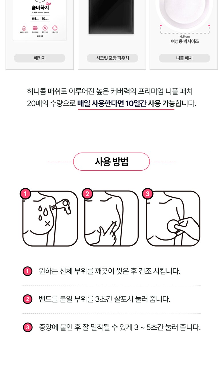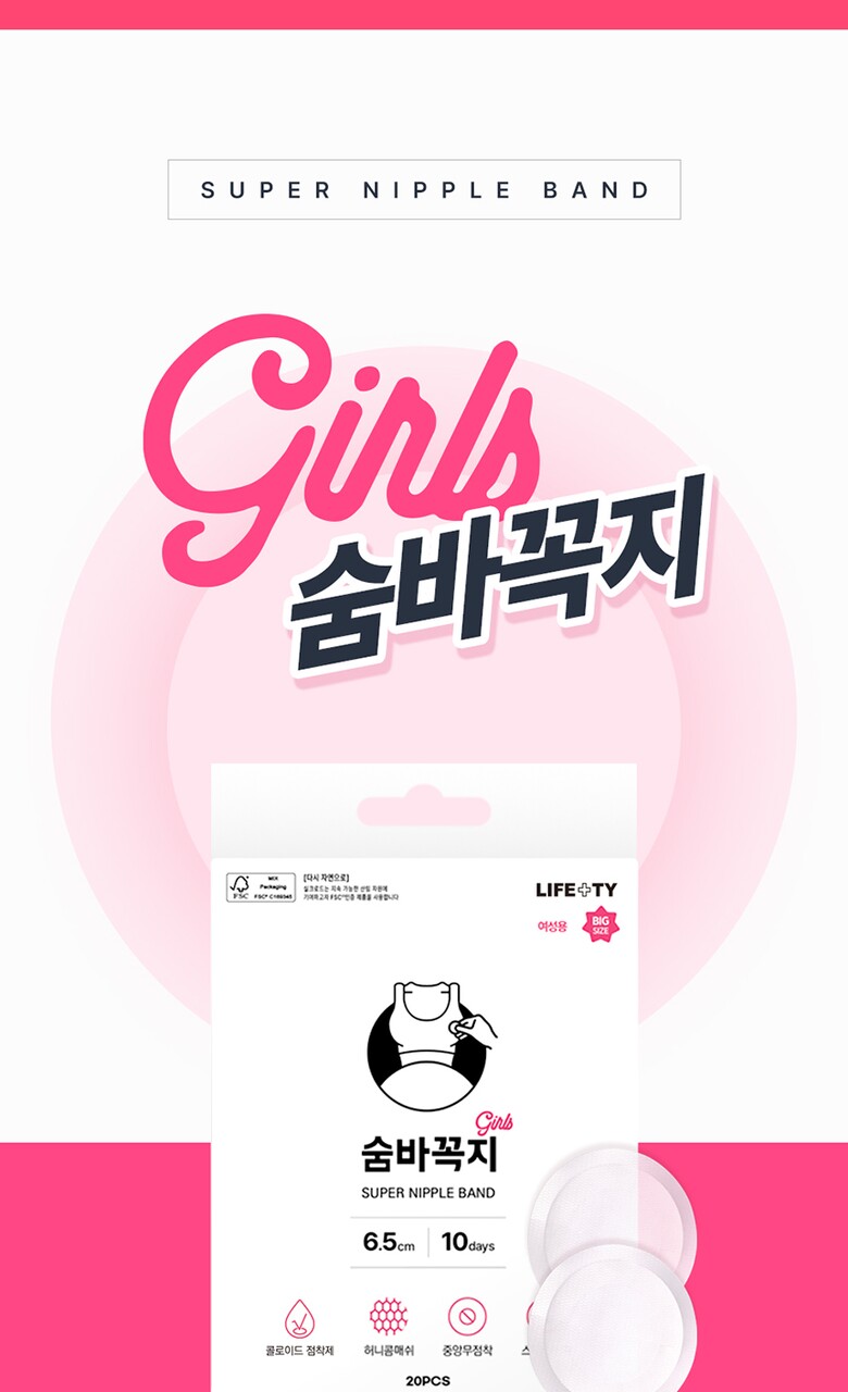 숨바꼭지 걸즈 니플밴드 20매입 여성 스킨 누드패치 여자 붙이는브라 비키니 수영복 웨딩