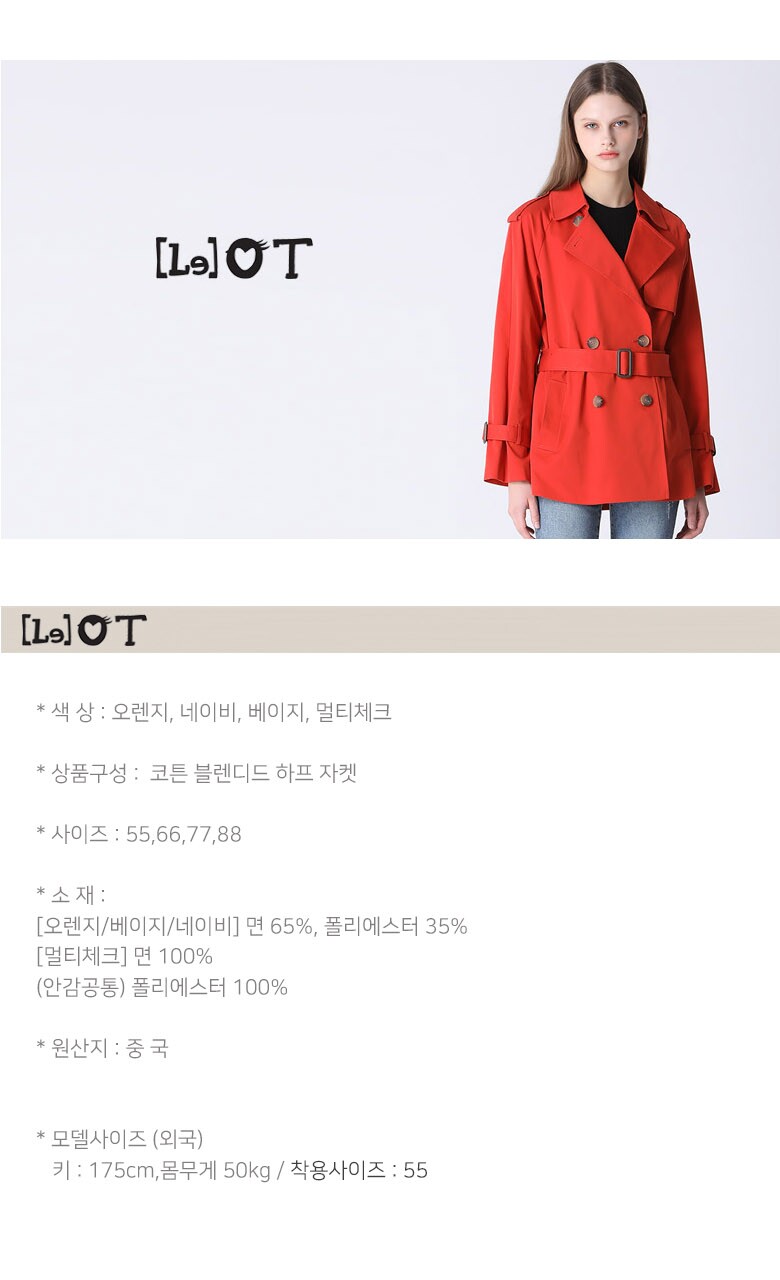 1. 제품 소재 (섬유의 조성 또는 혼용률을 백분율로 표시, 기능성인 경우 성적서 또는 허가서) | [오렌지,베이지,네이비] 면 65%, 폴리에스터 35% [멀티체크] 면 100% (안감공통) 폴리에스터 100% |