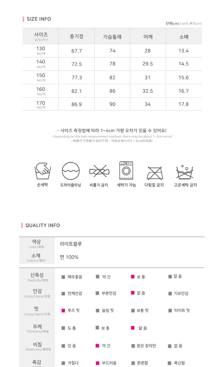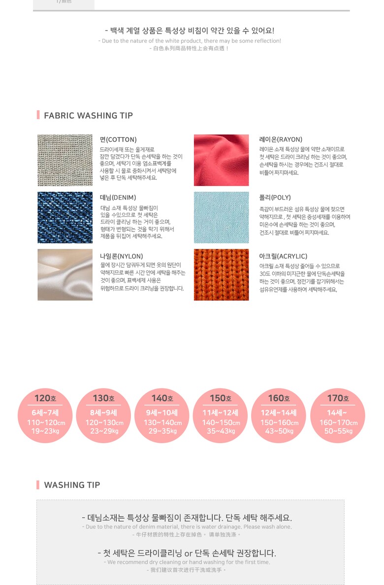 6. 세탁방법 및 취급시 주의사항 상세페이지 내 기재