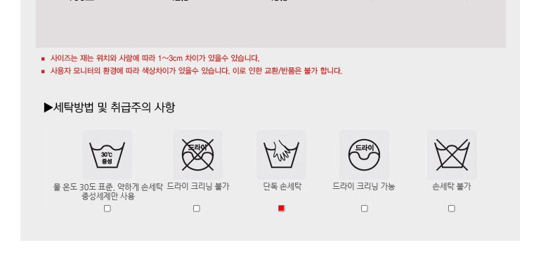 6. 세탁방법 및 취급시 주의사항 | 손세탁 |