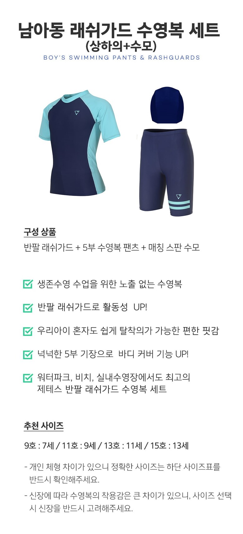 제테스 남아동 반팔 래쉬가드 세트 민트 B_1O883