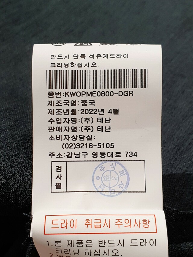 · 취급 시 주의사항 : 물세탁 금지, 기본 드라이