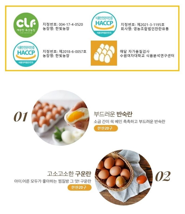 HACCP[해썹]인증 구운란 구운계란 맥반석계란 대란 20구 4판