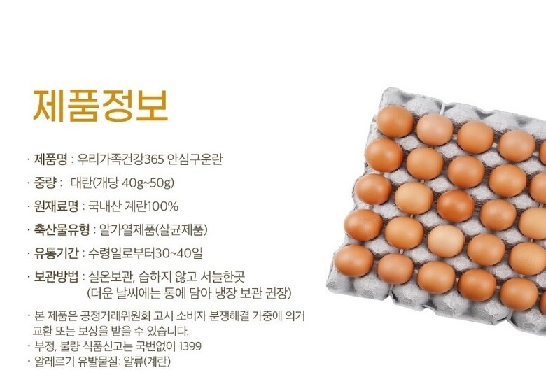 | 1. 포장단위별 용량(중량),수량,크기 | 대란 구운란60구(3판) |