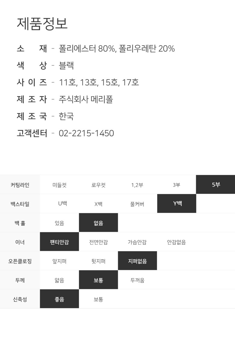 1. 제품 소재 (섬유의 조성 또는 혼용률을 백분율로 표시, 기능성인 경우 성적서 또는 허가서) 폴리에스터 80% , 폴리우레탄 20%