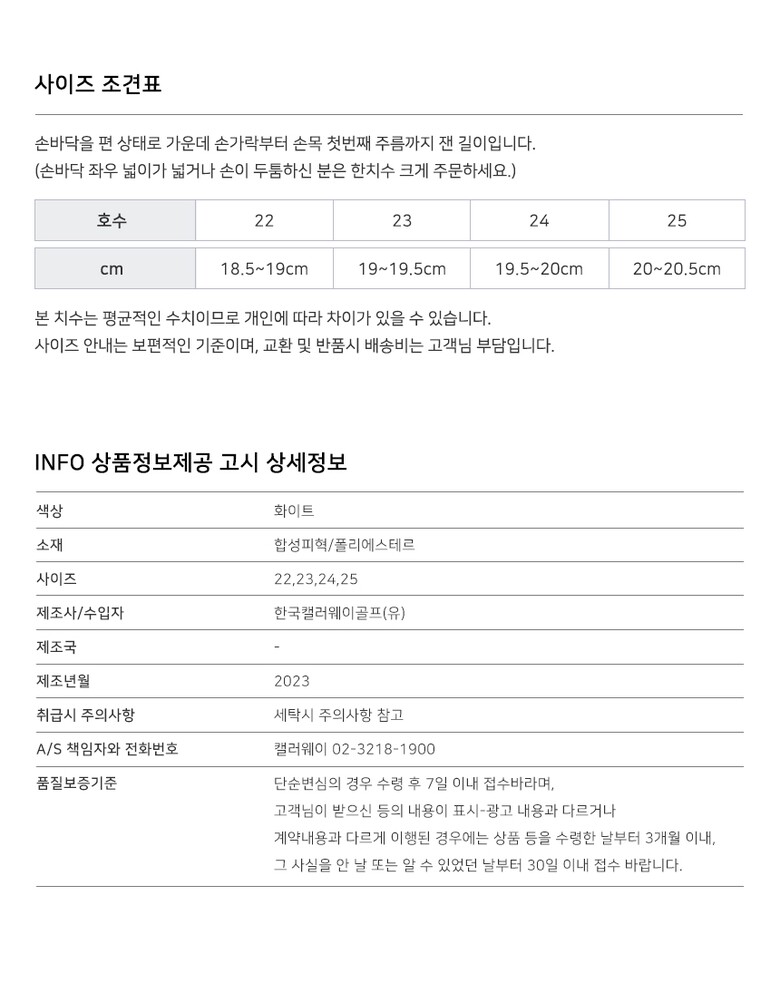 8. A/S 책임자와 전화번호 | 캘러웨이코리아/02-3218-1900 |