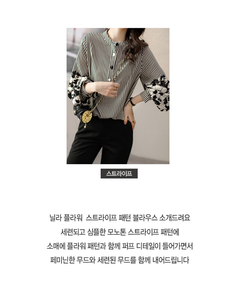 닐라 플라워 스트라이프 패턴 블라우스