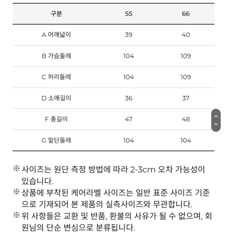 · 안감 : □ 전체 □ 부분 ■ 없음