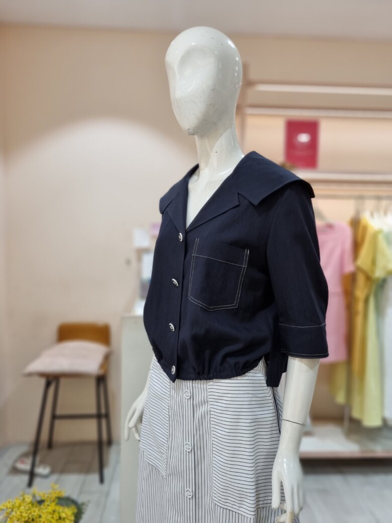 스티치 스트링 크롭 블라우스 GN5A0BLJ3