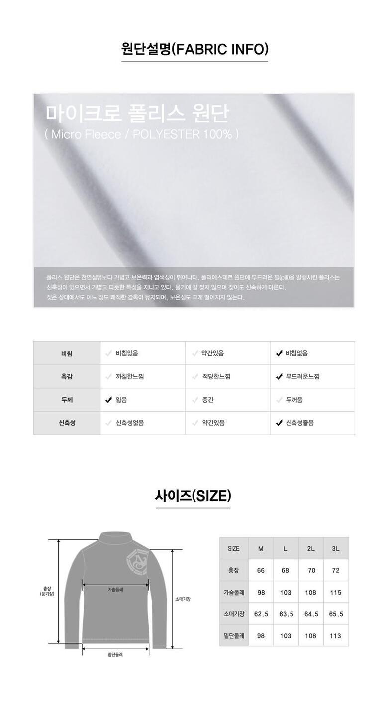 아티누스 AT-574W 플리스 하이넥 티셔츠 화이트 부드러운 촉감
