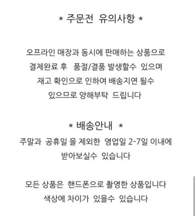 | 6. 세탁방법 및 취급시 주의사항 | 상품상세참조 |