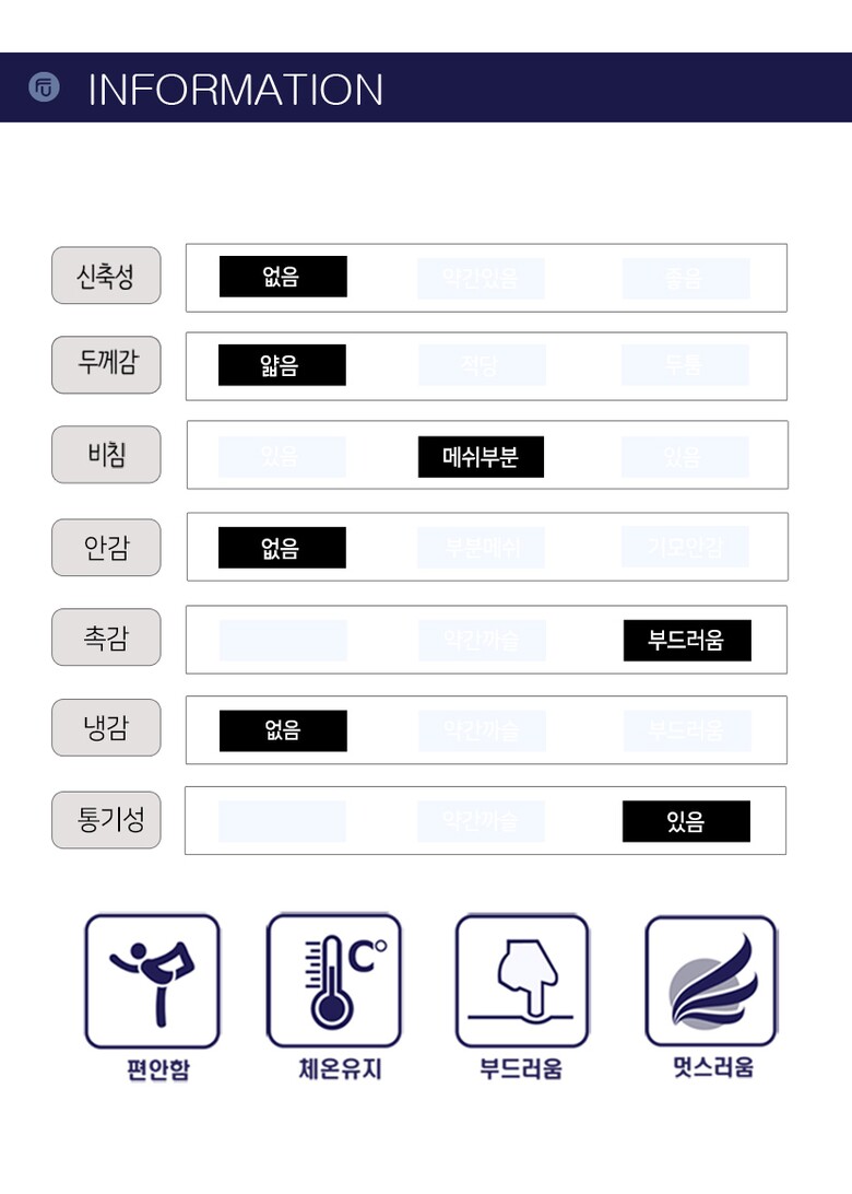 | 1. 제품 소재 (섬유의 조성 또는 혼용률을 백분율로 표시, 기능성인 경우 성적서 또는 허가서) | 상세이미지 참조 |