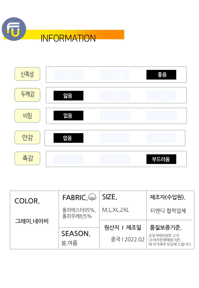| 1. 제품 소재 (섬유의 조성 또는 혼용률을 백분율로 표시, 기능성인 경우 성적서 또는 허가서) | 상세이미지 참조 |