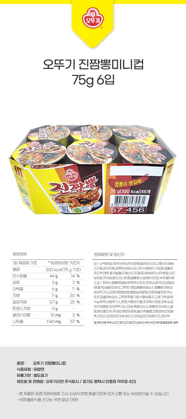 해당 상품은 [ 진짬뽕 소컵75g 8입 ] 구성의 상품입니다.