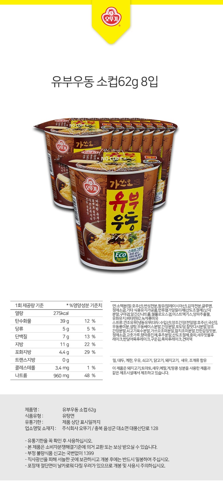 해당 상품은 [ 유부우동 소컵62g 8입 ] 구성의 상품입니다.