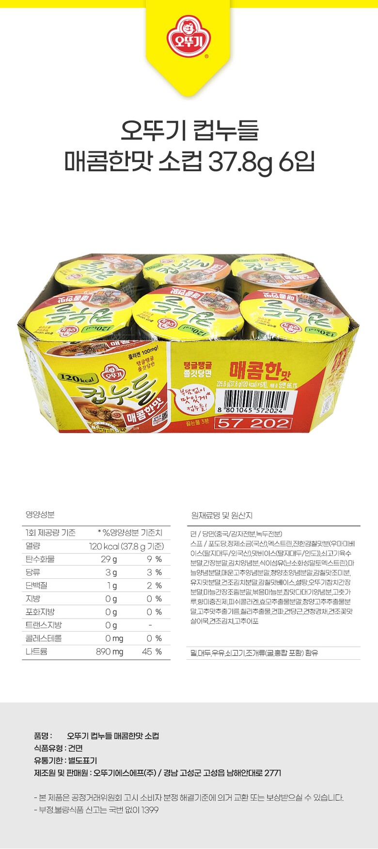 해당 상품은 [ 컵누들 매콤한맛37.8g 8입 ] 구성의 상품입니다.