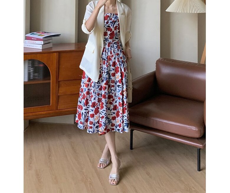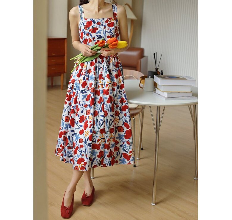 플링 플로워 민소매 원피스
