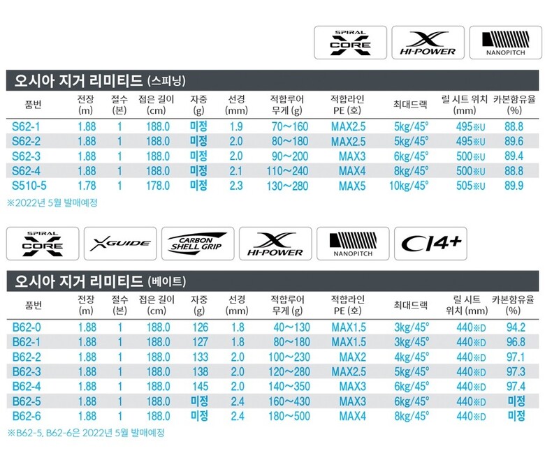 시마노 오시아 지거 리미티드 S62-2 (22) 지깅 로드[윤성정품]