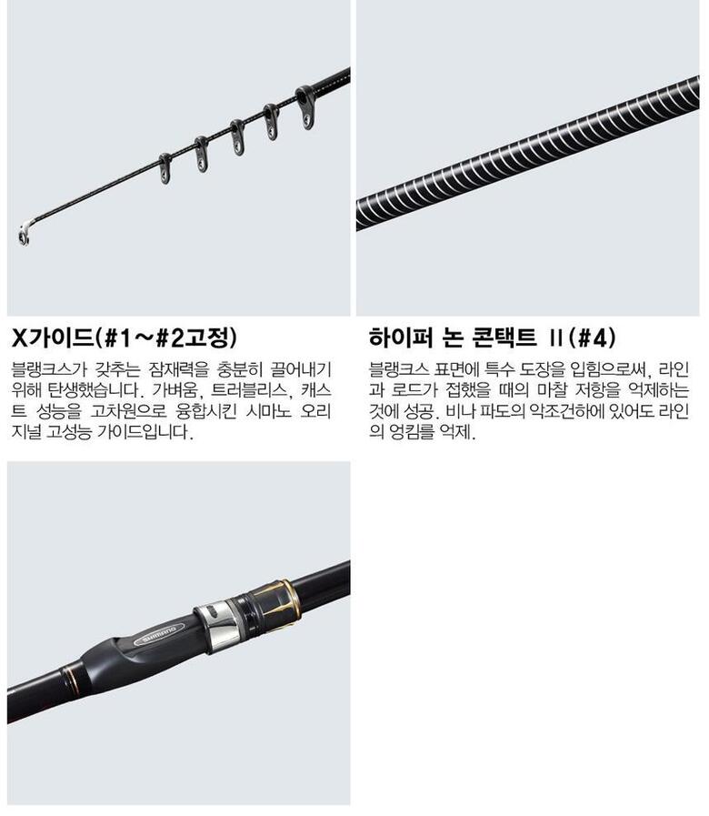 품명 | 전장 (m) | 절수 (본) | 접은길이 (cm) | 무게 (g) | 선경 (mm) | 추부하 (호) | 적합목줄 (호) | 카본 함유율(%) |