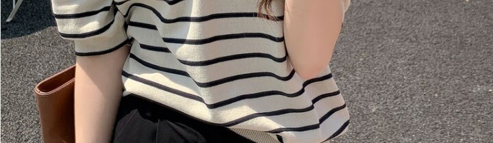 트임 스트라이프 반팔 니트 티셔츠