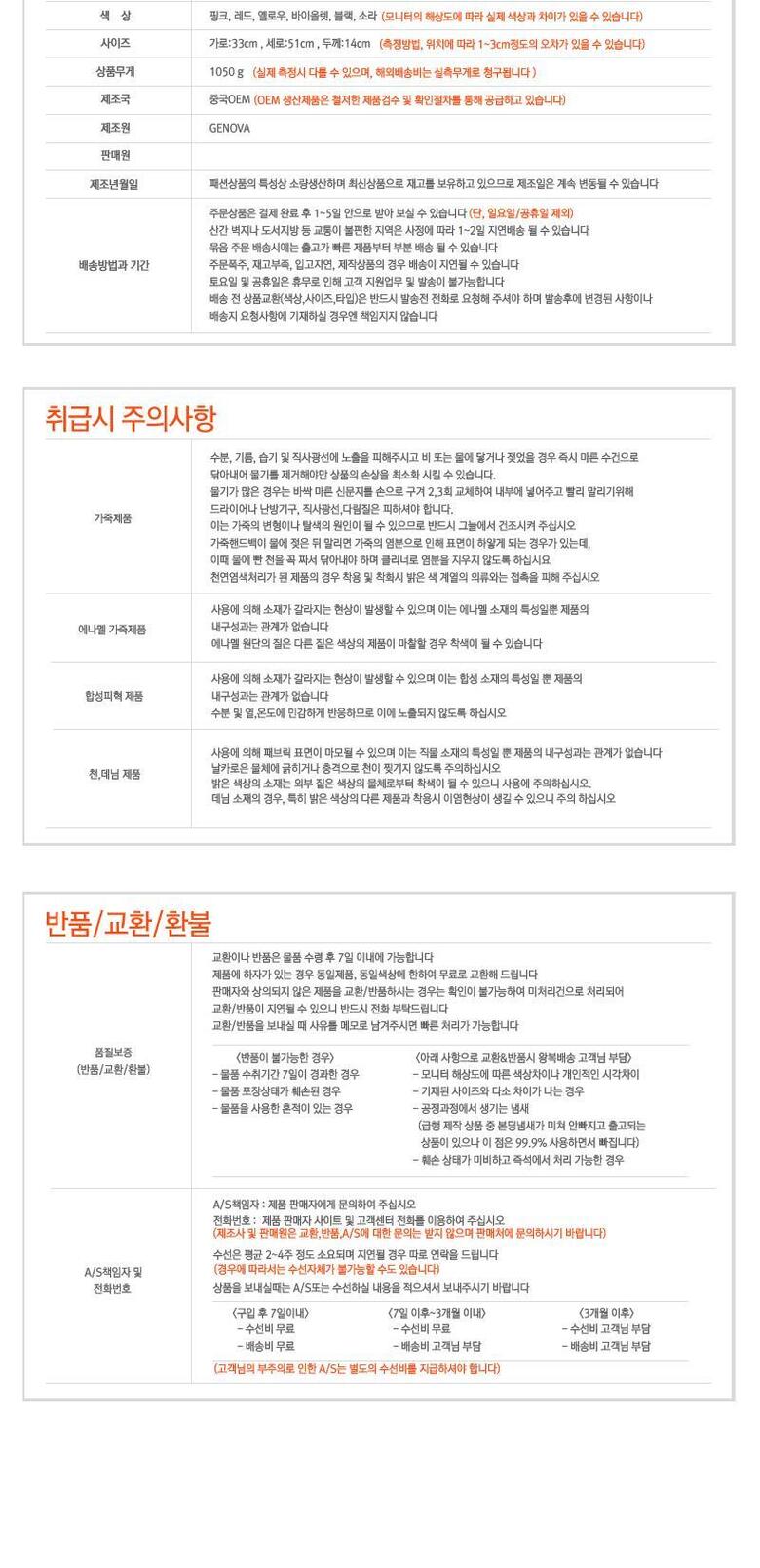 상품불량에 의한 반품, A/S, 품질보증 및 피해보상 등에 관한 사항은 소비자 분쟁해결기준(공정거래위원회 고시) 구매자가 미성년자인 경우에는 상품 구입시 법정대리인이 동의하지 아니하면 미성년자 본인 또는 법정대리인이 구매취소 할 수 있습니다. |