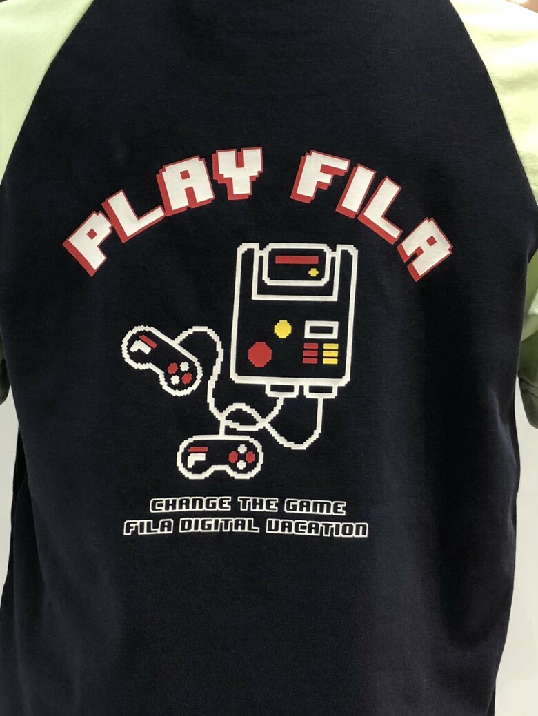 - 게이밍 그래픽이 프린트 및 자수로 들어간 반팔 티셔츠