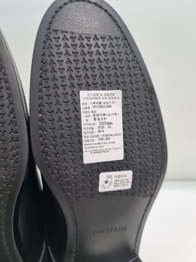 | 1. 제품 소재 (운동화인 경우에는 겉감, 안감을 구분하여 표시) | 소가죽 |