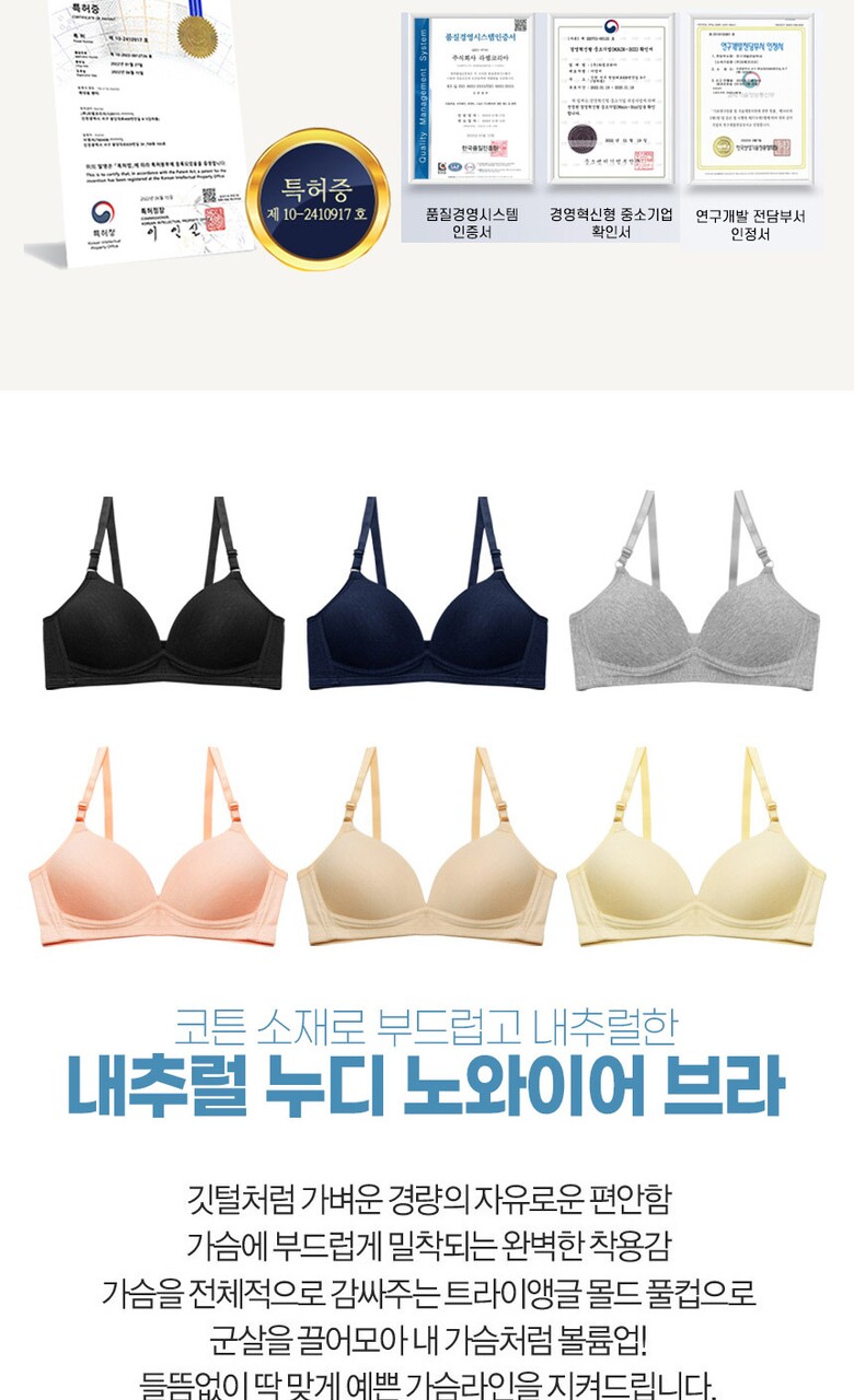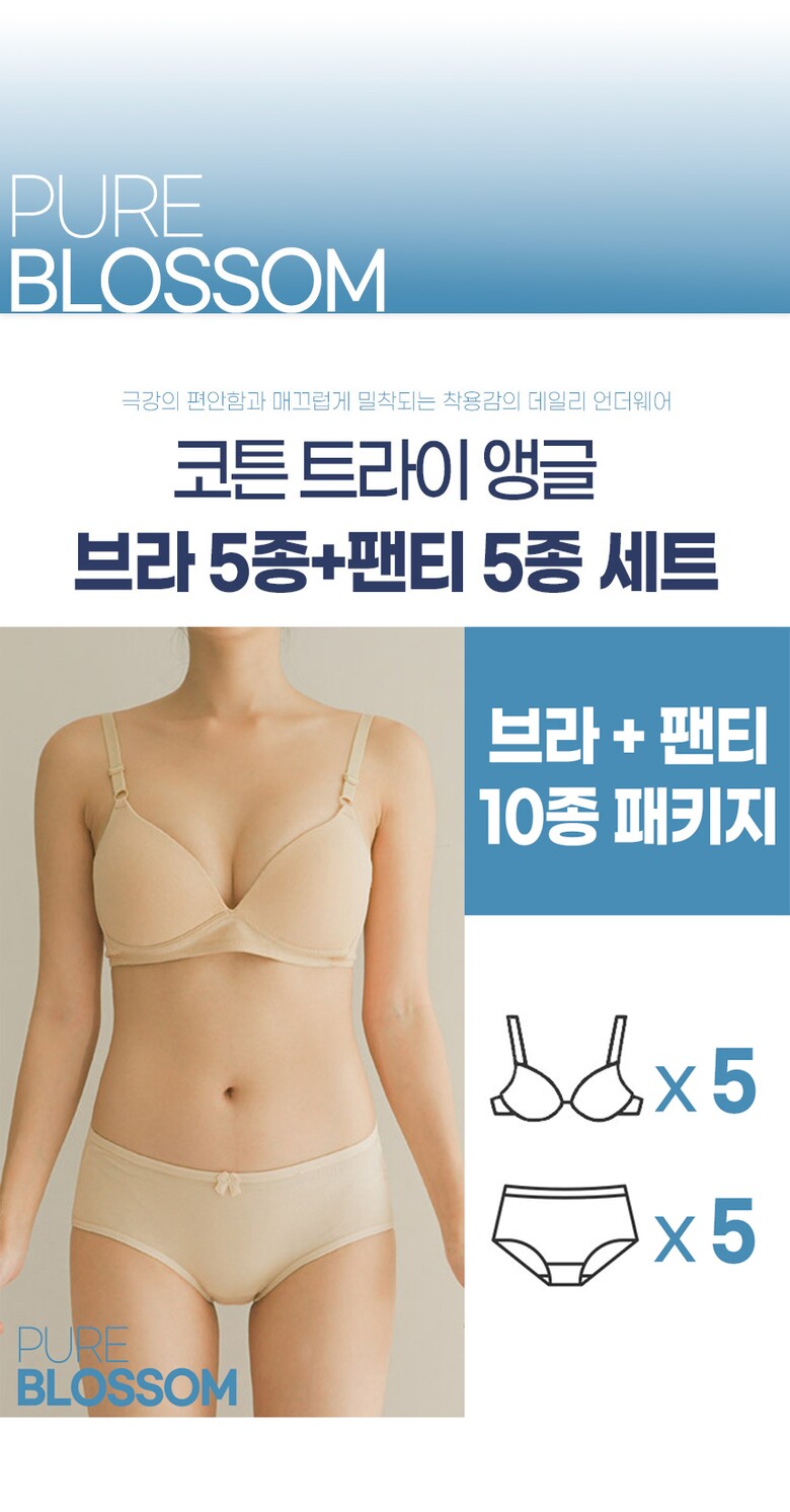 스벅 쿠폰 증정 [퓨어블라썸][10종세트] 코튼 트라이 앵글 노와이어 브라5+팬티5 세트/빅사이즈