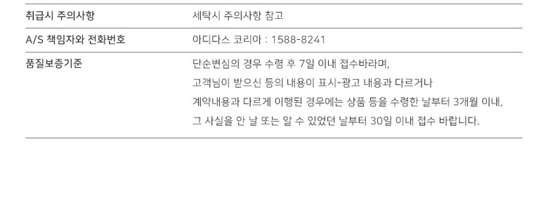 9. A/S 책임자와 전화번호 | 아디다스코리아/1588-8241 |