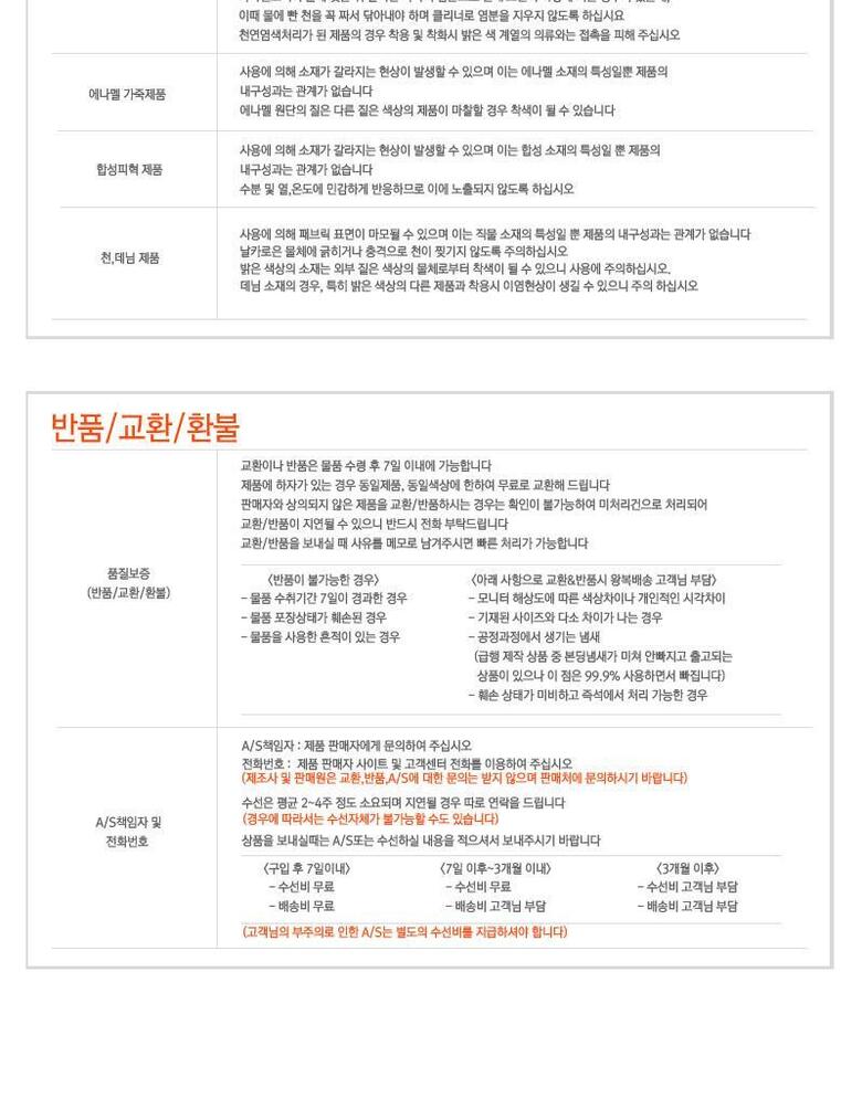 • 처음 배송된 상품상태와 다를 경우(세탁/착용 후 외출하신 경우) 반품이 불가합니다.