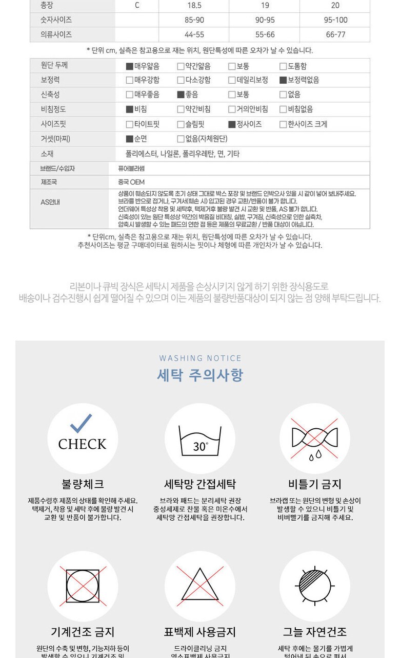 | 6. 세탁방법 및 취급시 주의사항 | 상세페이지 참조 |