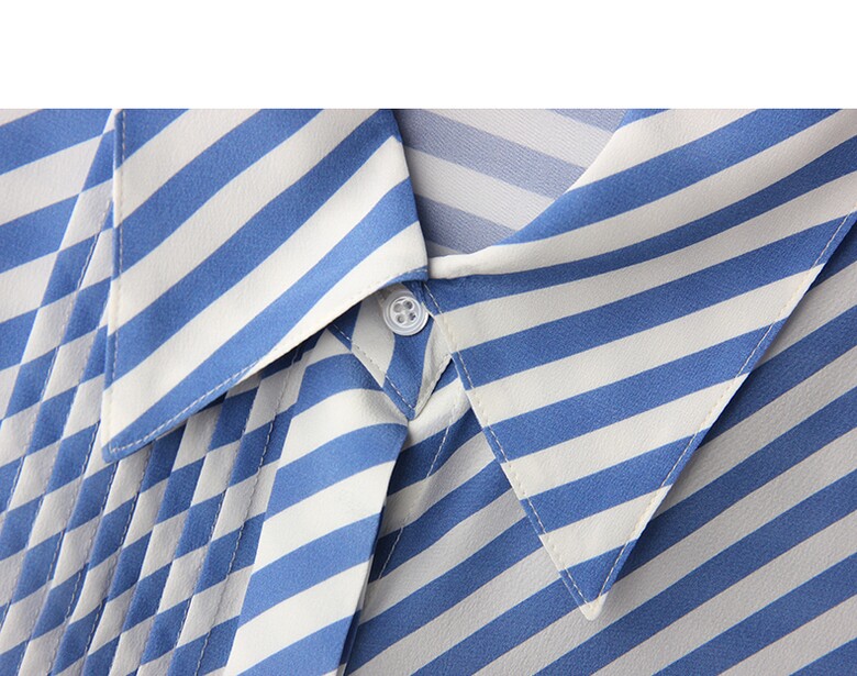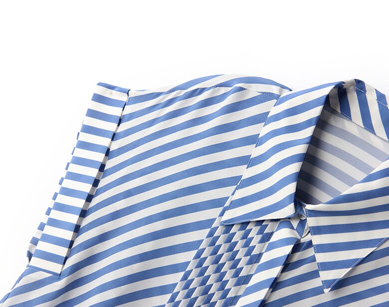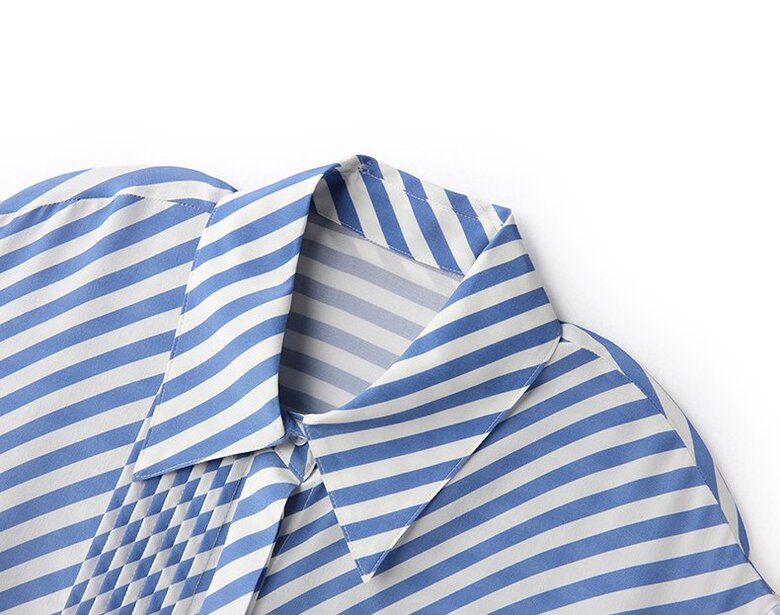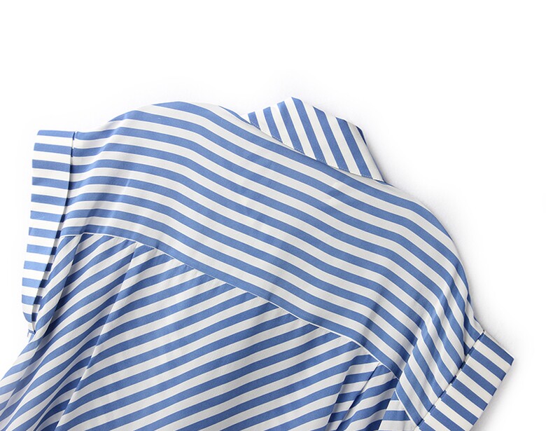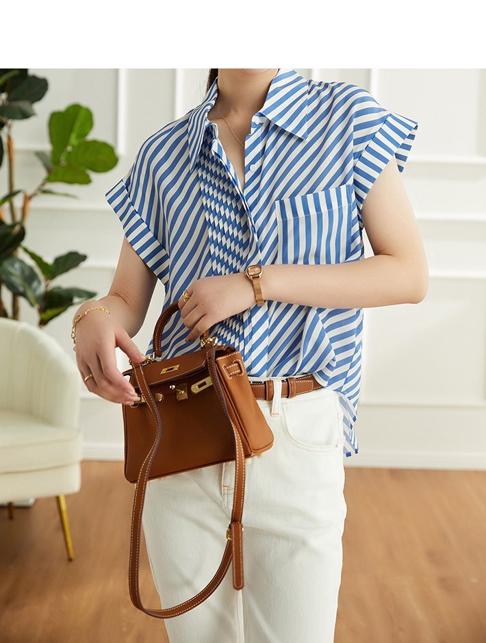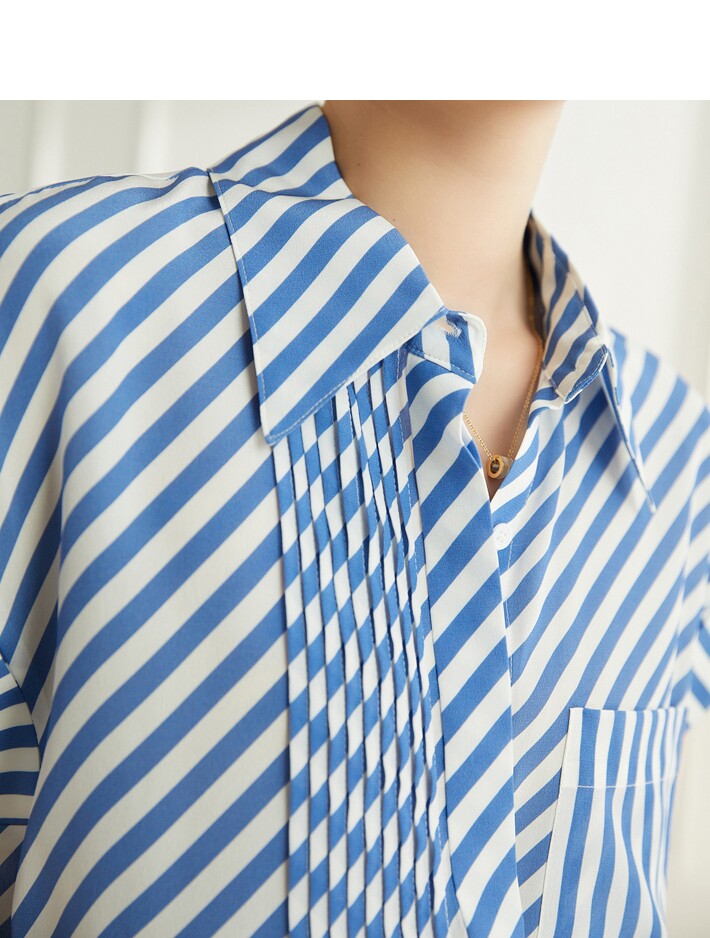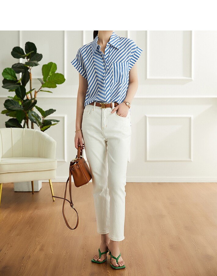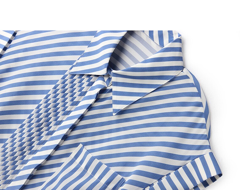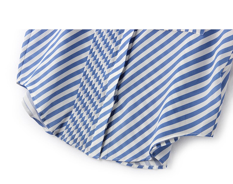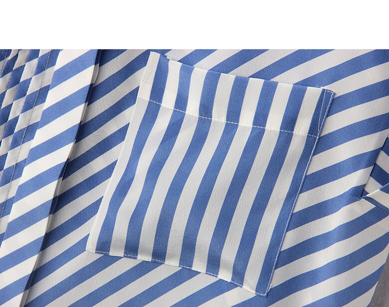 와일스 사선 스트라이프 포켓 반소매 블라우스
