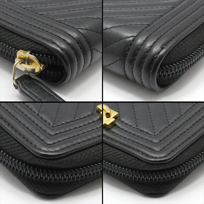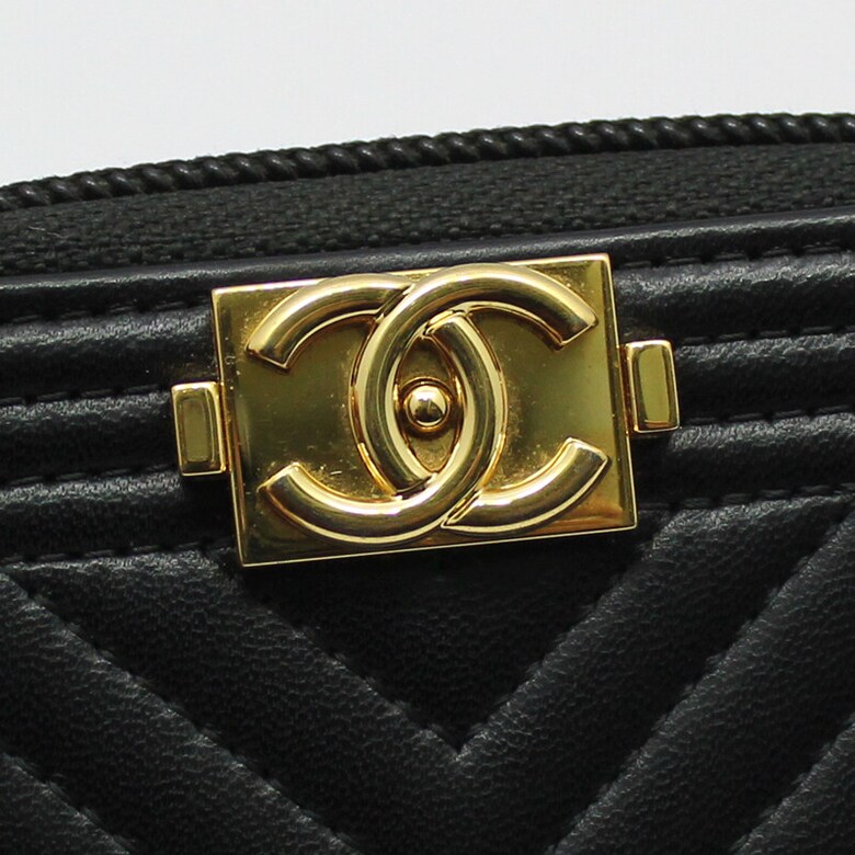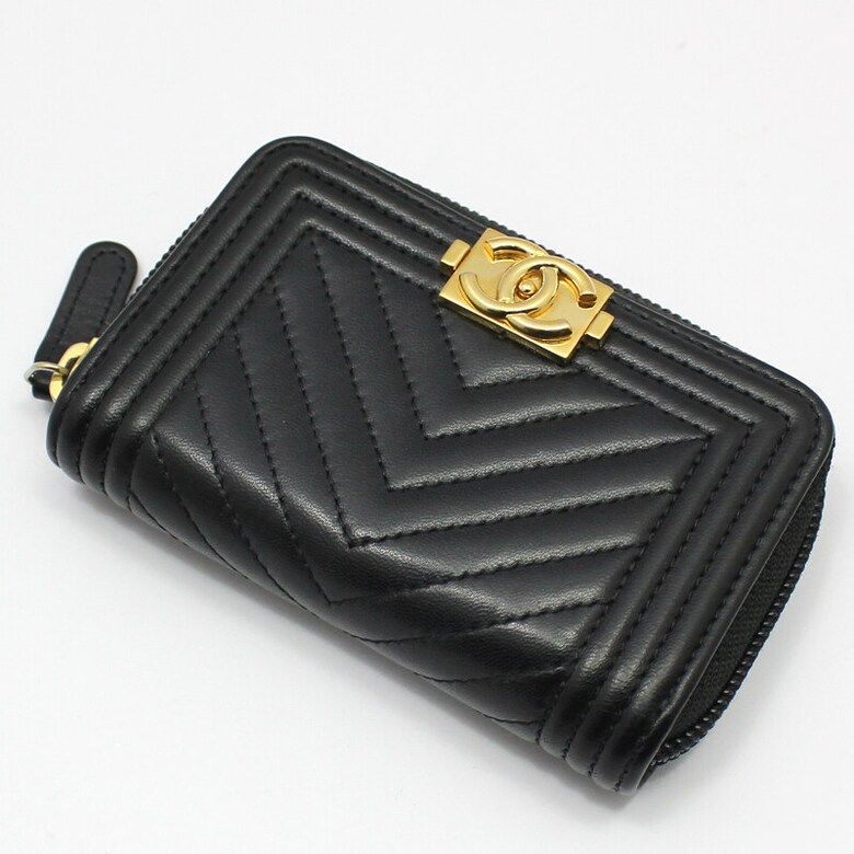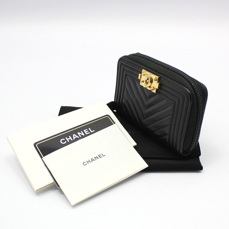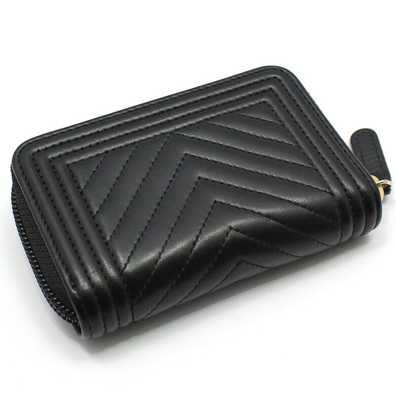 샤넬 A80602 쉐브론 금장 보이 샤넬 지퍼 카드 지갑