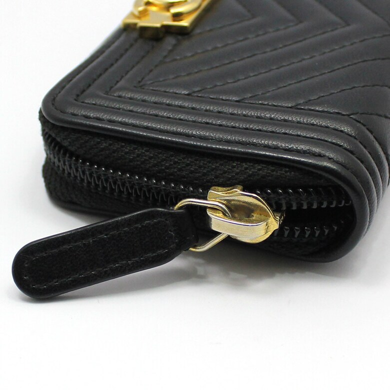 - 시크한 블랙 쉐브론 램스킨 소재에 금장 장식이 더해진 아이템입니다.