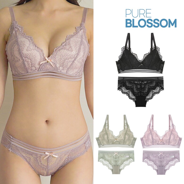 스벅 쿠폰 증정 [퓨어블라썸] 노와이어 푸쉬업 볼륨 로맨틱 레이스 브라+팬티 세트
