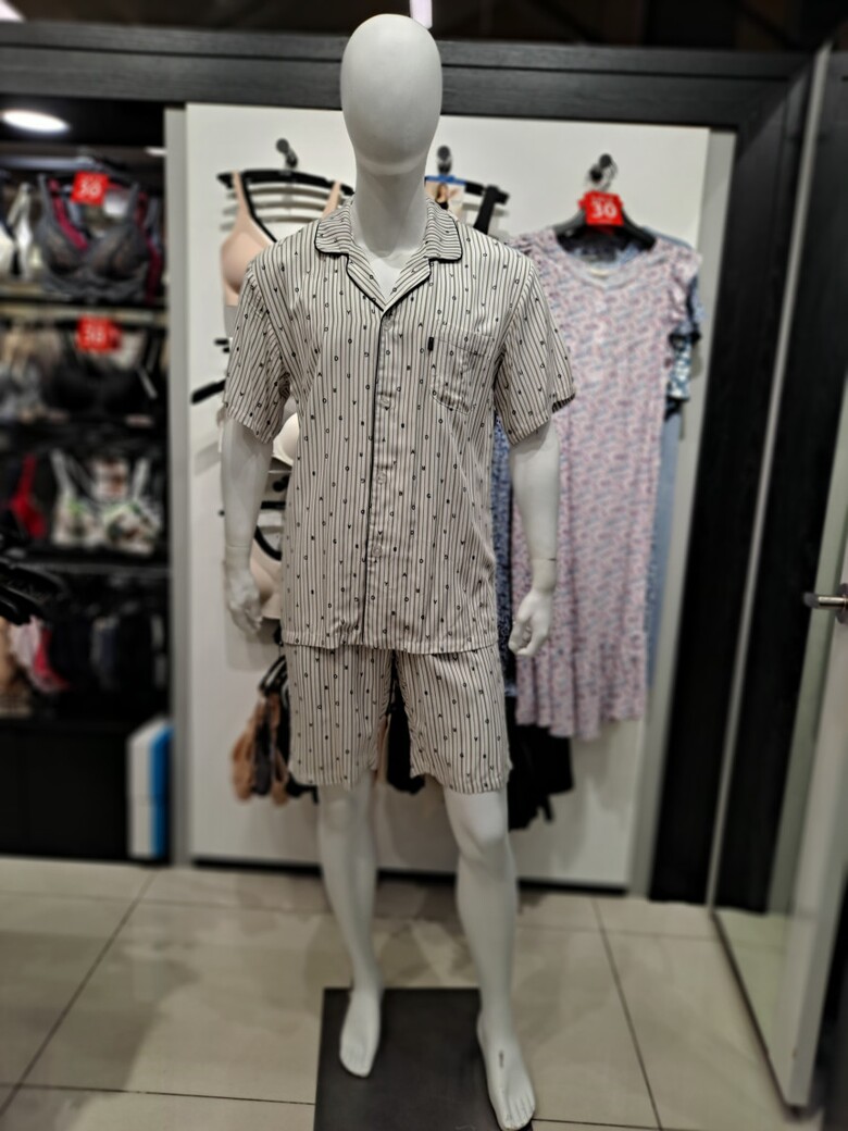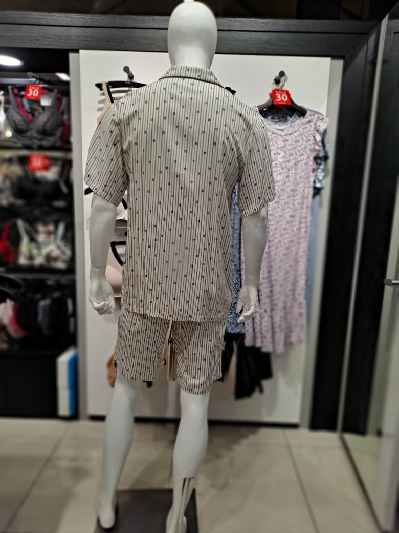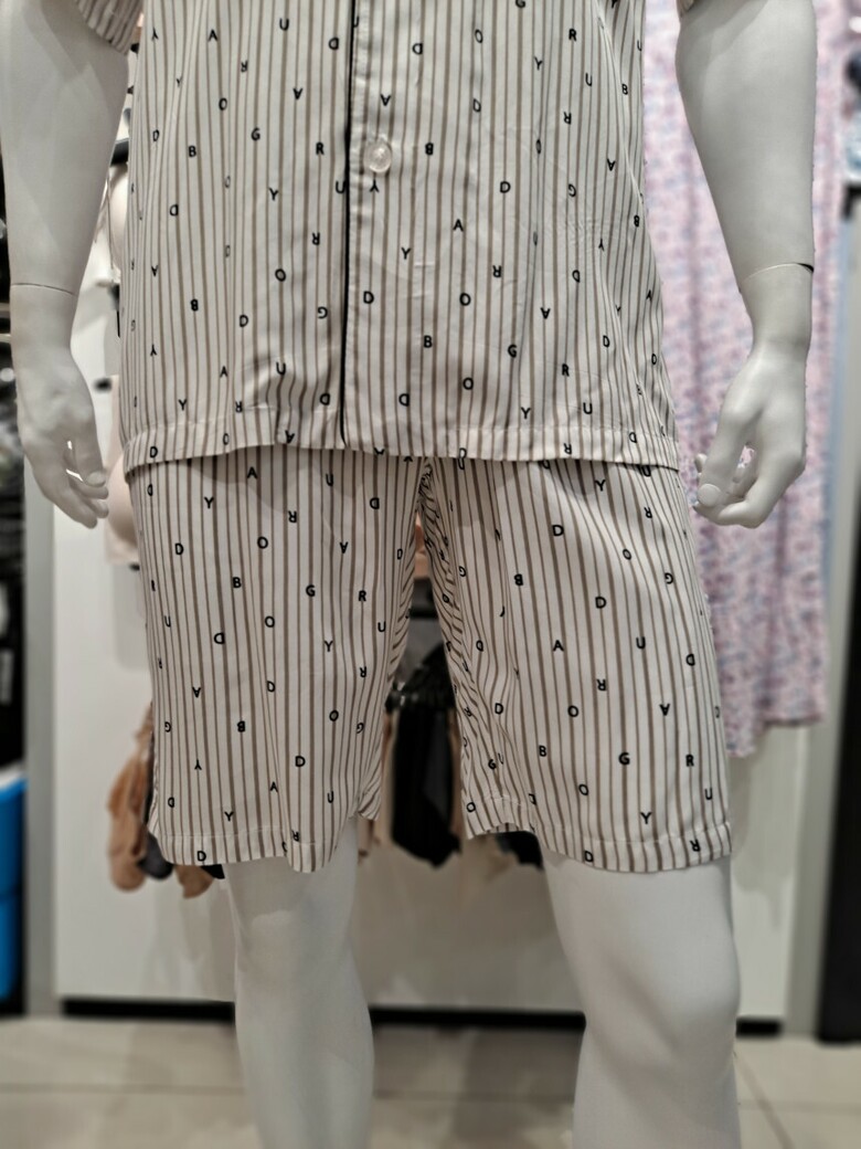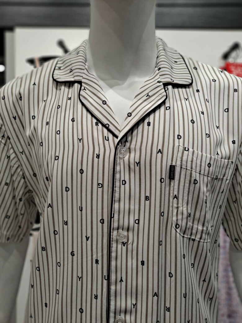 스트라이프 문양과 보디가드 로고 레터링이 캐주얼한 커플 파자마 세트