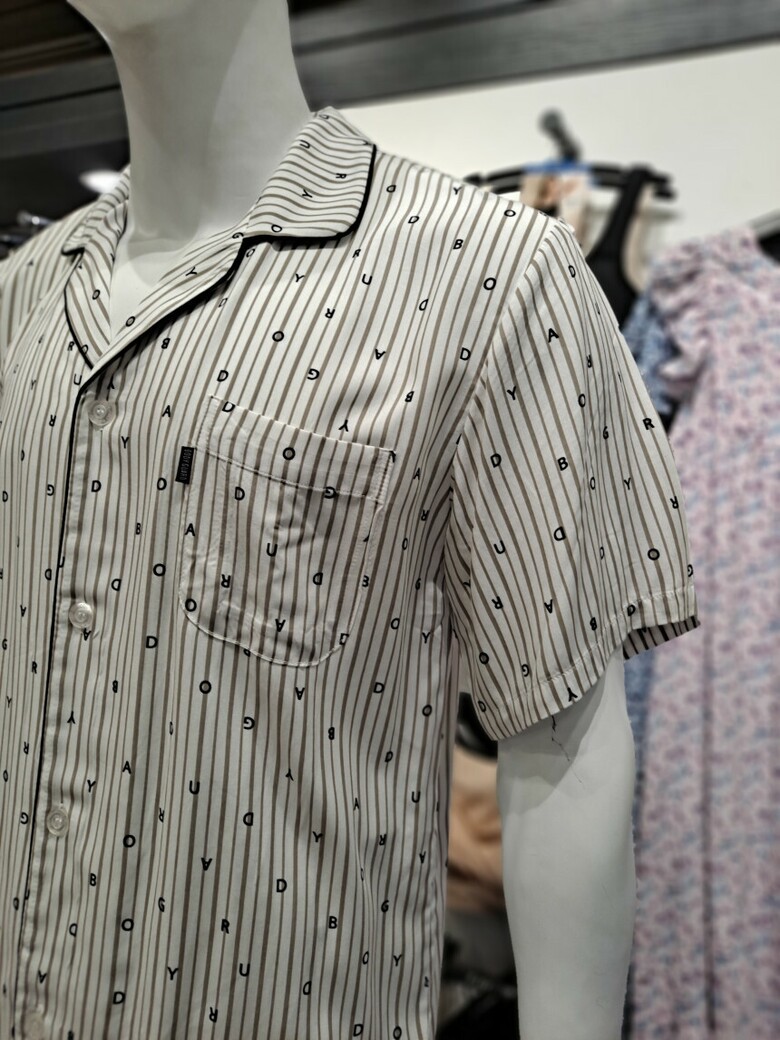 스트라이프 문양과 보디가드 로고 레터링이 캐주얼한 커플 파자마 세트, 심플하고 트렌디한 제품
